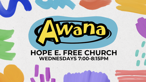 Awana is a ministry for kids from preschool-6th grade. At Awana kids will get to interact with friends through small group, games, and a lesson! We meet at Hope E. Free Church every Wednesday from 7:00pm-8:15pm. Transportation to and from church is available, if needed. Please contact the church with any questions.